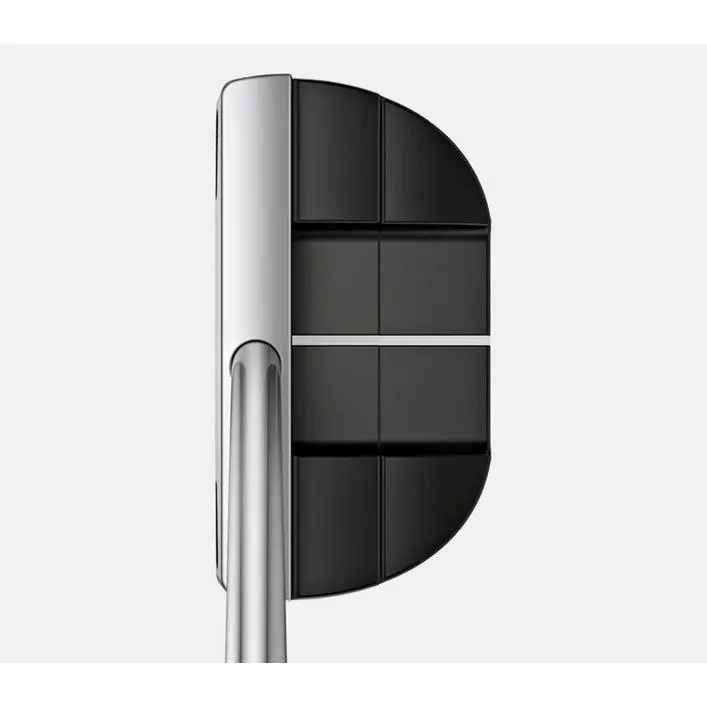The center-shafted head offers a visual symmetry, and tungsten toe-heel weights ensure stability for improved accuracy. The shallow milled face provides a firmer response and consistent ball speed. Using color blocking, a platinum topline contrasts against the black cavity to draw the focus forward.