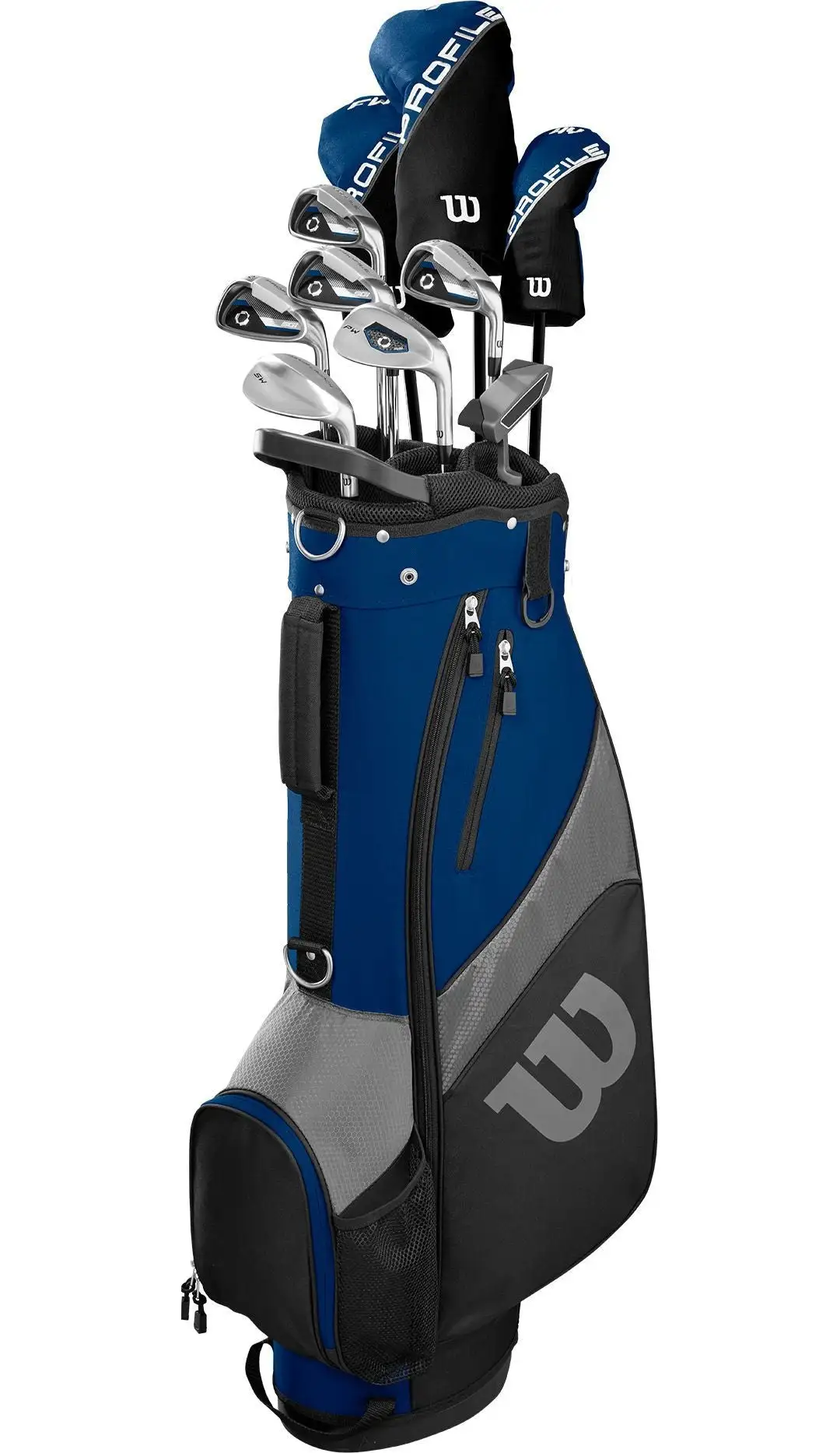 The Wilson Profile Complete Golf Club Set are customized based on lengths, shafts and grip size to fit golfers to their swing and physical characteristics. A unique custom fit system in a box, this set is designed for men playing the course regularly or newcomers looking to take the game seriously.